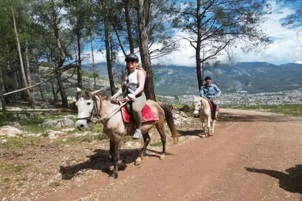 İçeriğe atlaFethiye Hisarönü çıkışlı at turuyla çam ormanları içinde doğayla baş başa 45 dakikalık keyifli bir yolculuğa çıkın. Rehberli, güvenli ve her seviyeye uygun.