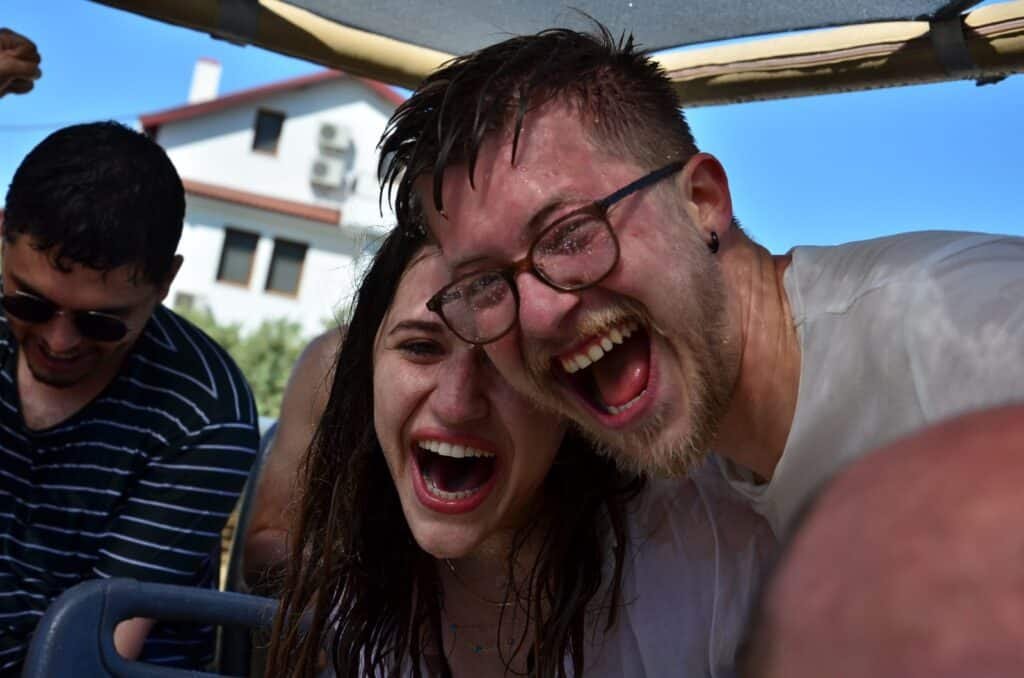 | Safari araçlarıyla su savaşları eşliğinde yola çıkış |