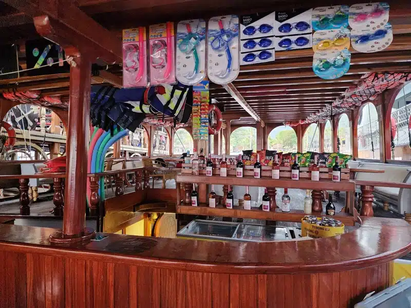 Tur sırasında öğle yemeği, taze ve lezzetli seçeneklerle sunulur. Ana yemek olarak tavuk veya balık tercih edebilirsiniz. Bu ana yemeğin yanında salata, makarna veya meze seçenekleri ile zenginleştirilmiş bir menü sunulmaktadır. Yemeğinizi teknede dinlenirken ve doğal güzelliklere göz atarken keyifle yiyebilirsiniz.