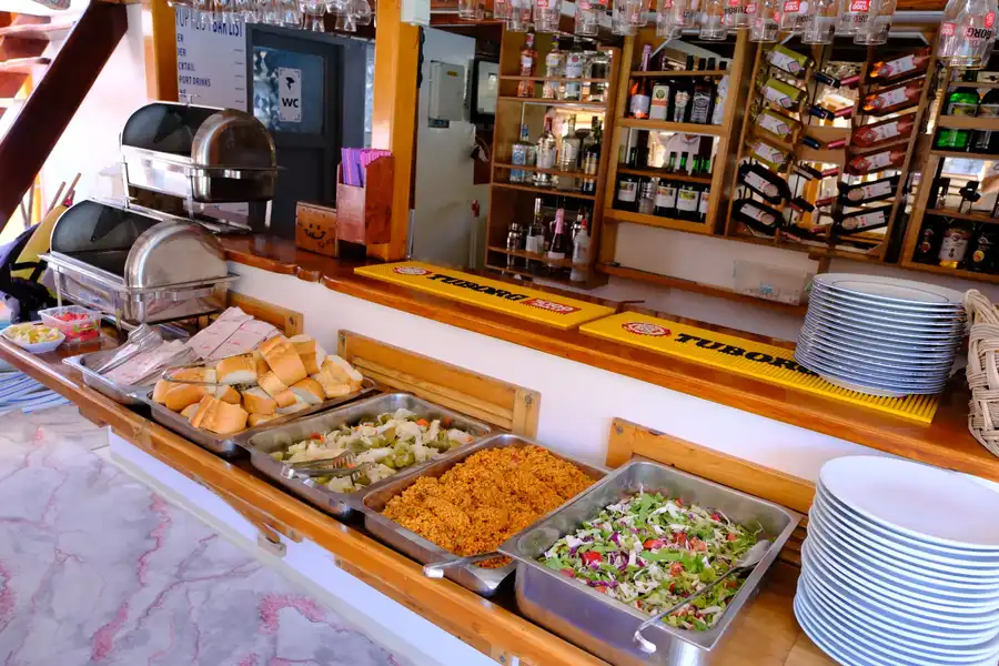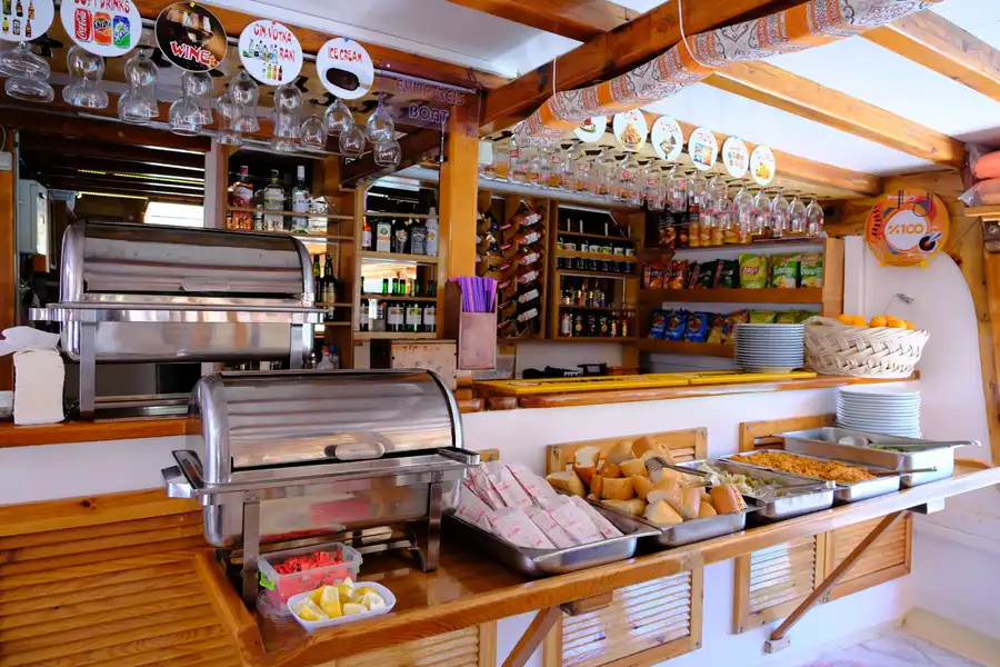 | Öğle Yemeği | Teknede tavuk veya balık ana yemek, salata, makarna veya meze servisi yapılır. |